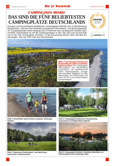 für Campingurlaube www.camping.info im Rahmen des camping.info Awards 2021